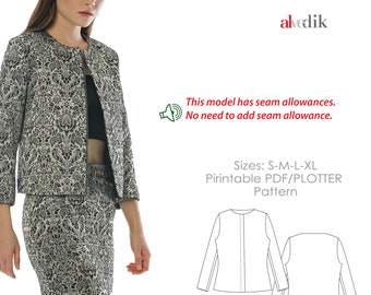 Tweed Jacket Pdf Sewing Pattern Boxy Jacket Pattern Sizes Etsy